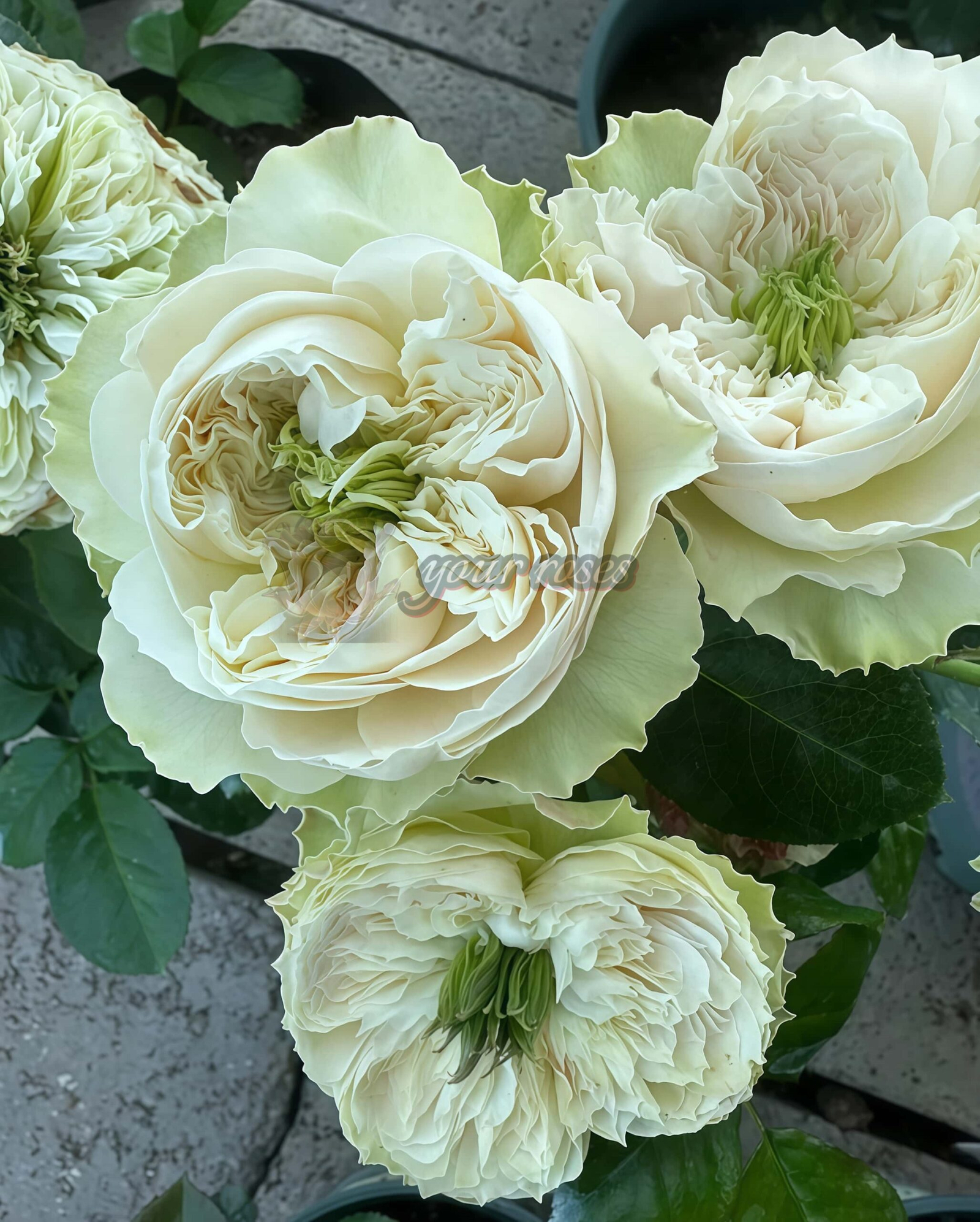 Whitby Abbey Rose: Bred by Jan Spek Rozen (Netherlands), 2022 release. 100cm tall, 8-10cm blooms. Creamy with subtle salmon hints, green-centered. Nearly scent-free. A charming月季 with unique coloring—eye-catching in any garden!